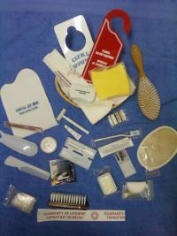Одной не маловажной деталью любого гостиничного номера является косметика, которая представляет собой индивидуальный набор гигиенических и косметических средств. Такие наборы были созданы для максимизации комфортного пребывания гостей в номере, всякое же бывает, могли и забыть что-то взять с собой. Комплектация наборов может быть разная, чаще всего в них входит: шампунь, гель для душа, бальзам, мыло, зубная щетка, одноразовые тапочки, салфетки, швейный набор и так далее. Так же в дополнении к наборам могут идти спички, расчёски, шапочки для душа и другие необходимые товары.